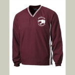 Pullover with Embroidered Logo Cool, windy days are no match for this soft wind shirt. With tipping on the collar and at the gussets, it boasts simple lines, a quiet hand and true team-oriented style. 100% polyester Jersey lining with mesh insets at gussets for added breathability Rib knit v-neck collar Raglan sleeves Articulated elbows for greater mobility Half elastic, half self-fabric cuffs for comfort Tipping on the collar and at gussets Left side seam zipper for easy on/off Side pockets Drawcord hem with toggle