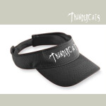 Mesh Visor with Thundercats embroidered on it. 100% polyester athletic mesh with tricot backing * Three panels * Sweatband folds down for easy embellishment * Pre-curved bill * Hook and loop fastener.